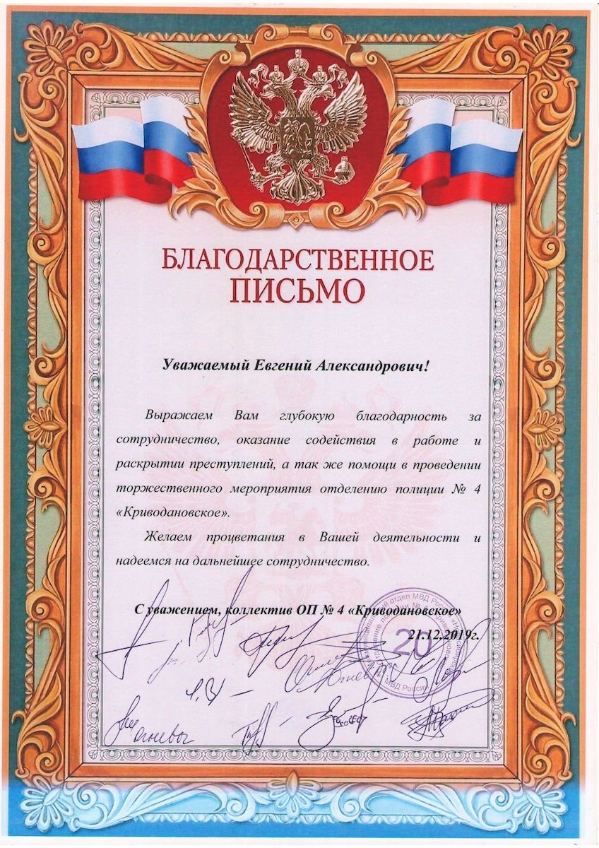 БЛАГОДАРСТВЕННЫЕ ПИСЬМА